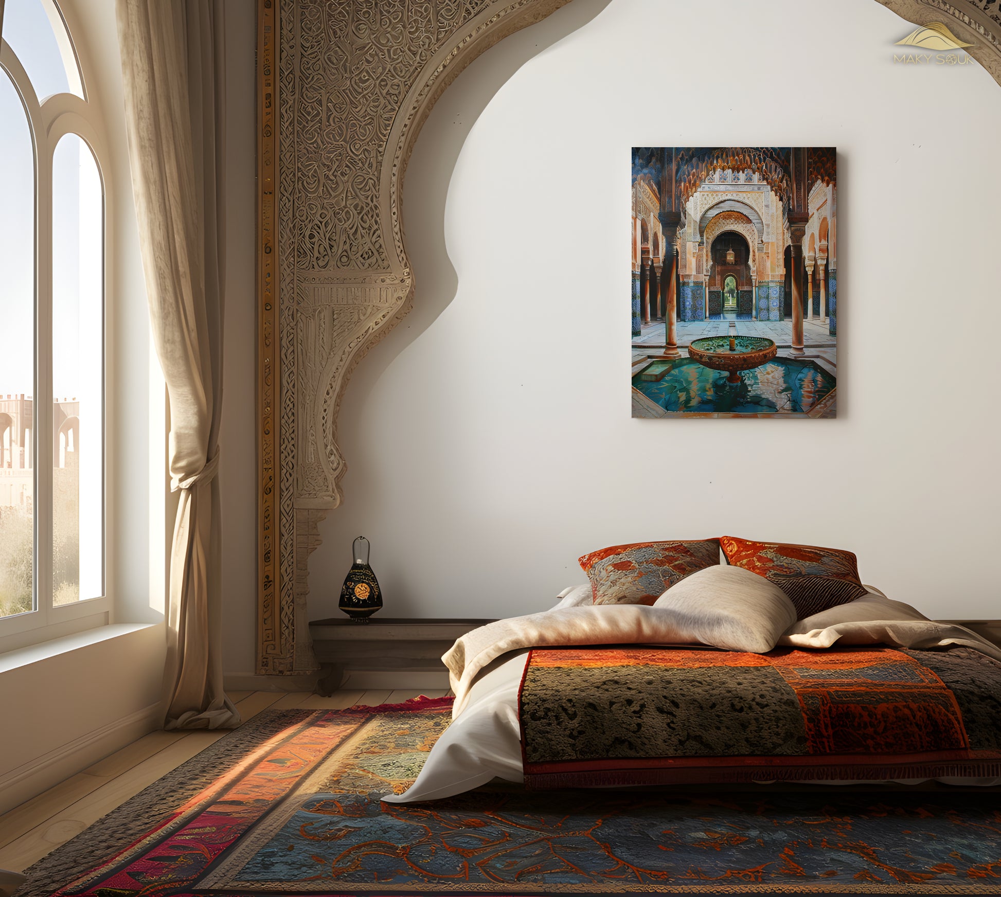 Tauchen Sie ein in die raffinierte Schönheit der arabischen Architektur. Dieses Canvas-Motiv fängt die elegante Baukunst und die kunstvollen Details traditioneller arabischer Gebäude ein und bringt einen Hauch von kultureller Finesse in Ihr Zuhause. Die zeitlose Architektur strahlt eine beruhigende und anspruchsvolle Atmosphäre aus, die jeden Raum bereichert.