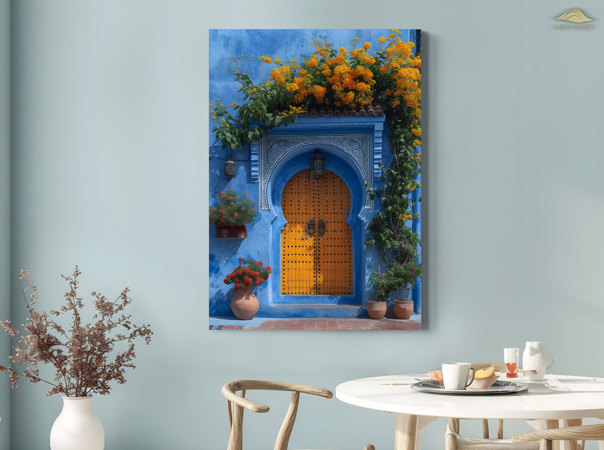 Tauchen Sie ein in die atemberaubende Welt der blauen Stadt Chefchaouen. Dieses Canvas-Motiv fängt die charakteristischen Blautöne und die einzigartige Atmosphäre Marokkos ein und bringt sie direkt in Ihr Zuhause. Der detailreiche Druck betont die Schönheit der traditionellen arabischen Baukunst und schafft ein visuelles Erlebnis, das Ihre Wände zum Leben erweckt.