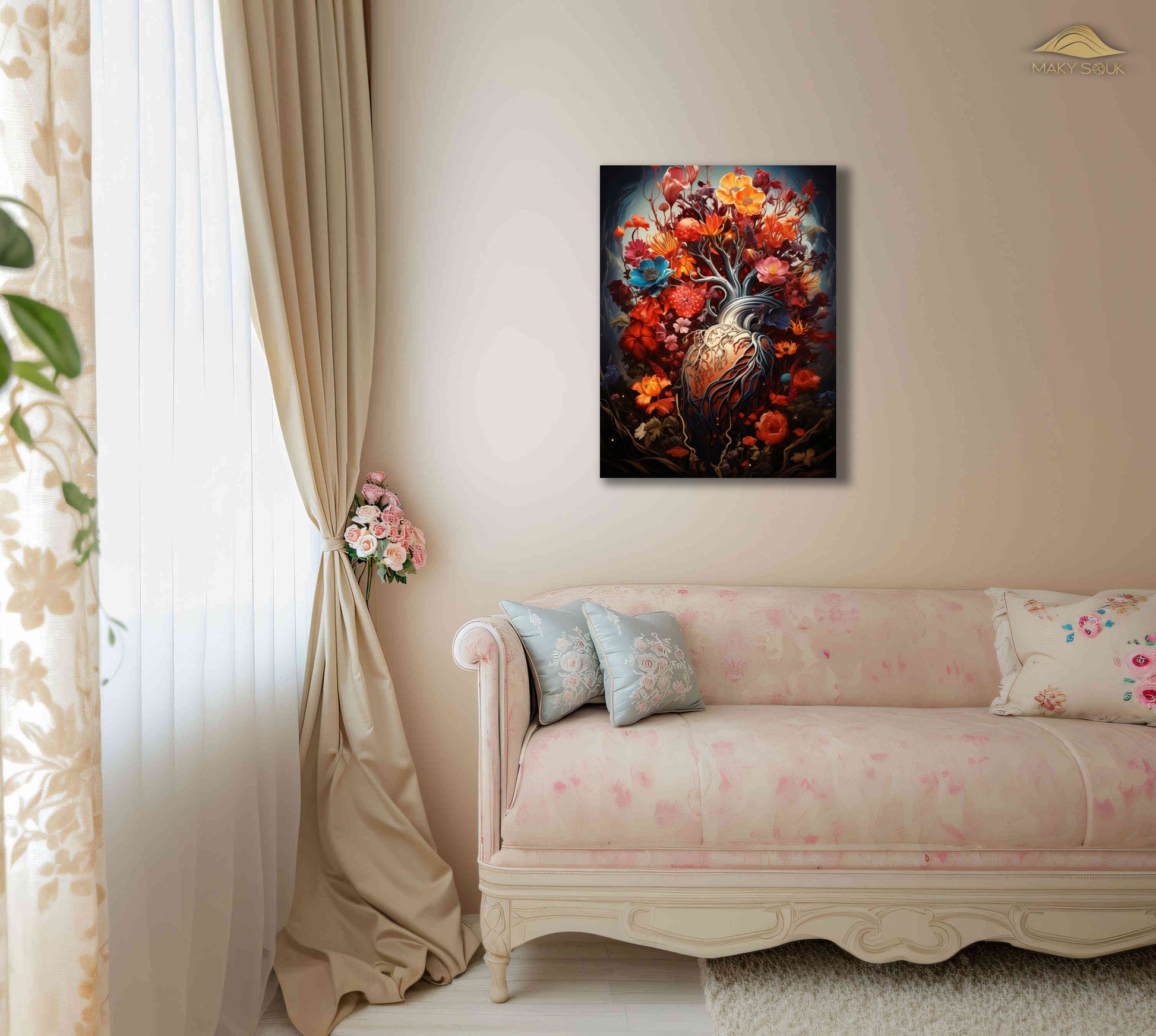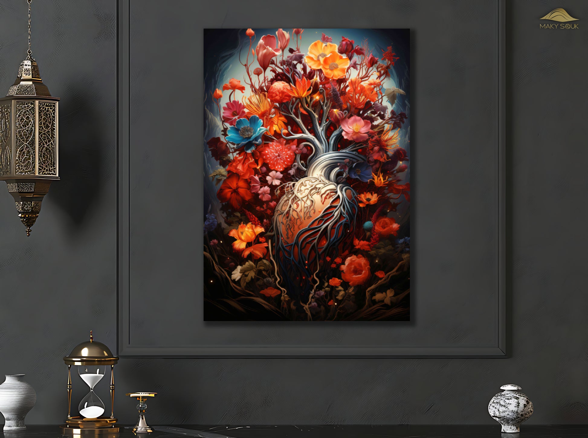 Erleben Sie die faszinierende Kombination aus lebendigen Farben und mysteriöser Stimmung mit unserem Canvas-Motiv. Die kontrastreiche Darstellung vereint die Liebe und Fröhlichkeit der Blüten mit der Intensität der Umgebung und schafft so ein einzigartiges und ausdrucksstarkes Kunstwerk, das jedem Raum Tiefe und Charakter verleiht.