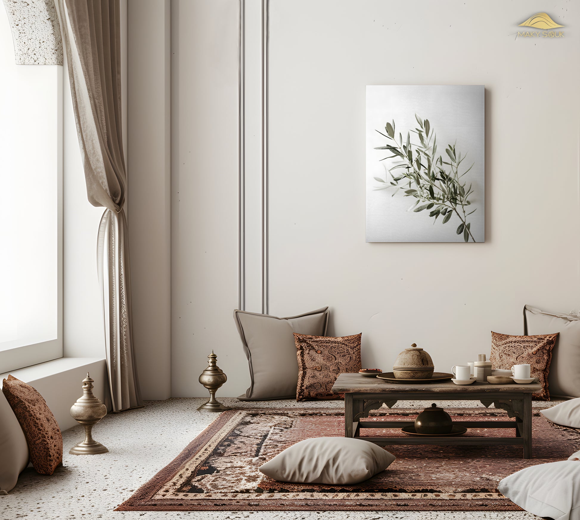 Genießen Sie die elegante Einfachheit eines Olivenzweigs, dieses Canvas-Motiv kombiniert minimalistische Schönheit mit kraftvollen visuellen Effekten, wodurch der Olivenzweig in seiner ganzen Pracht zur Geltung kommt. Der klare Kontrast und die subtile Farbgebung schaffen eine stilvolle Atmosphäre für Ihr Zuhause.