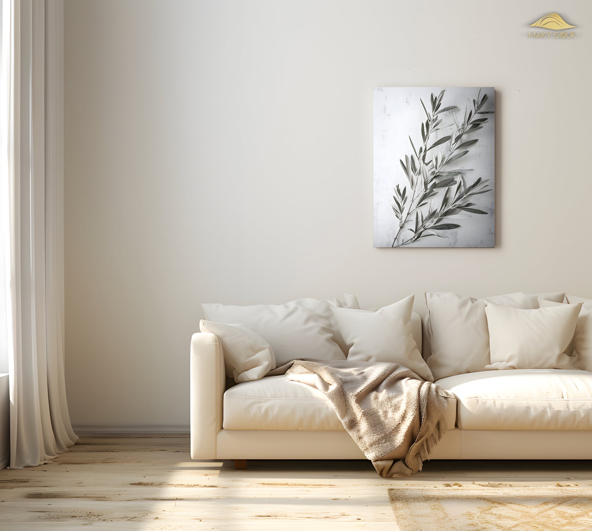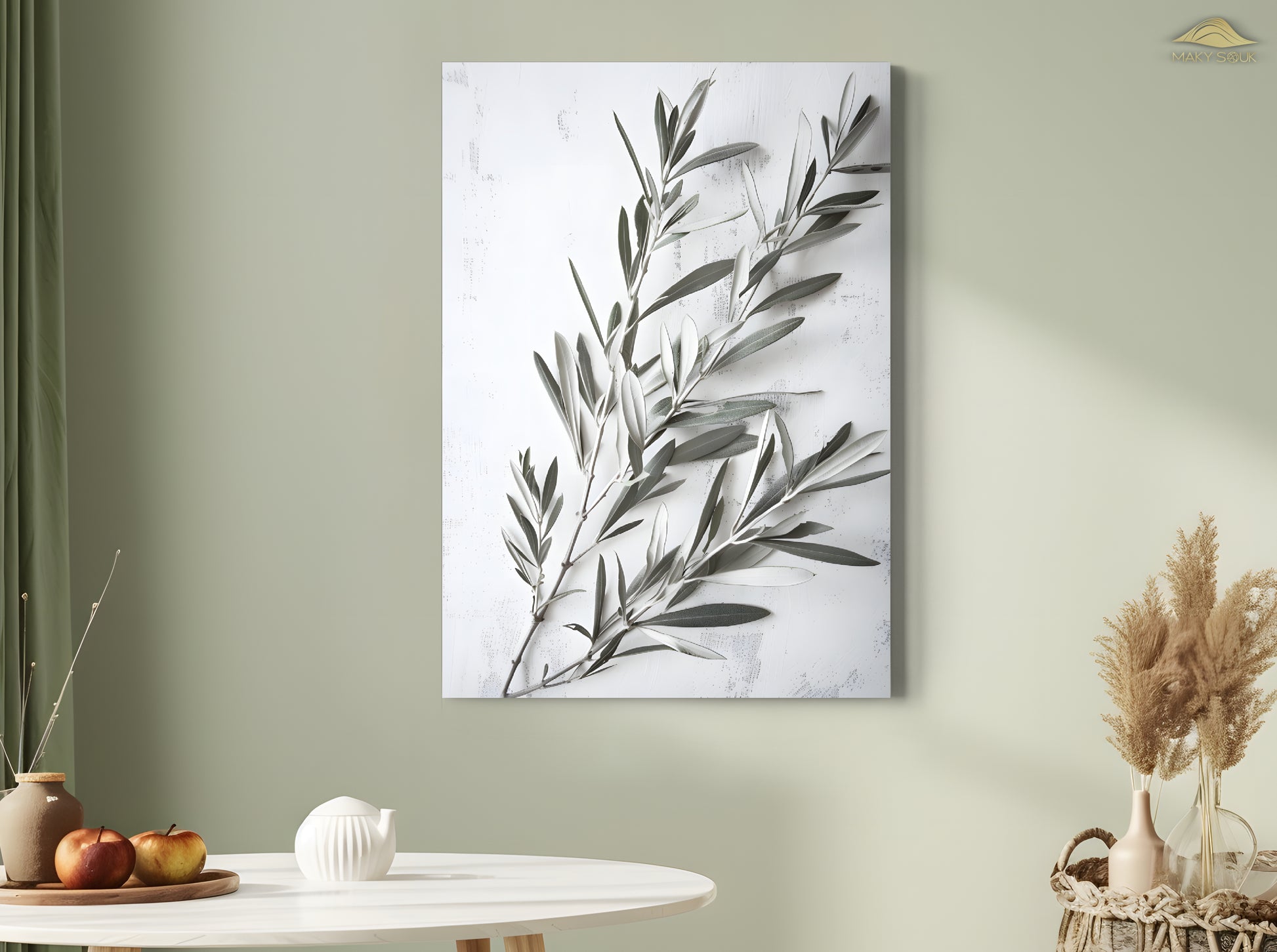 Genießen Sie die elegante Einfachheit eines Olivenzweigs, dieses Canvas-Motiv kombiniert minimalistische Schönheit mit kraftvollen visuellen Effekten, wodurch der Olivenzweig in seiner ganzen Pracht zur Geltung kommt. Der klare Kontrast und die subtile Farbgebung schaffen eine stilvolle Atmosphäre für Ihr Zuhause.