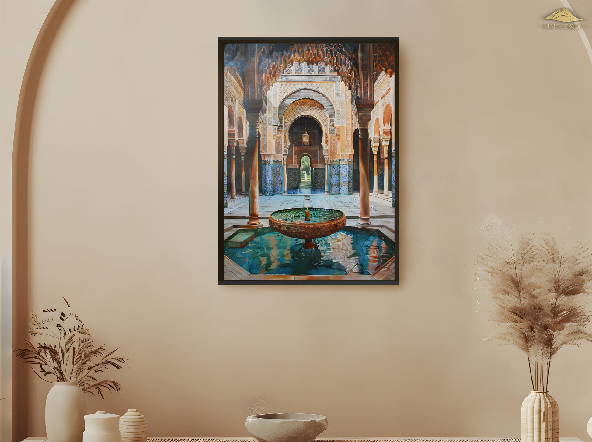 Tauchen Sie ein in die raffinierte Schönheit der arabischen Architektur. Dieses Poster fängt die elegante Baukunst und die kunstvollen Details traditioneller arabischer Gebäude ein und bringt einen Hauch von kultureller Finesse in Ihr Zuhause. Die zeitlose Architektur strahlt eine beruhigende und anspruchsvolle Atmosphäre aus, die jeden Raum bereichert