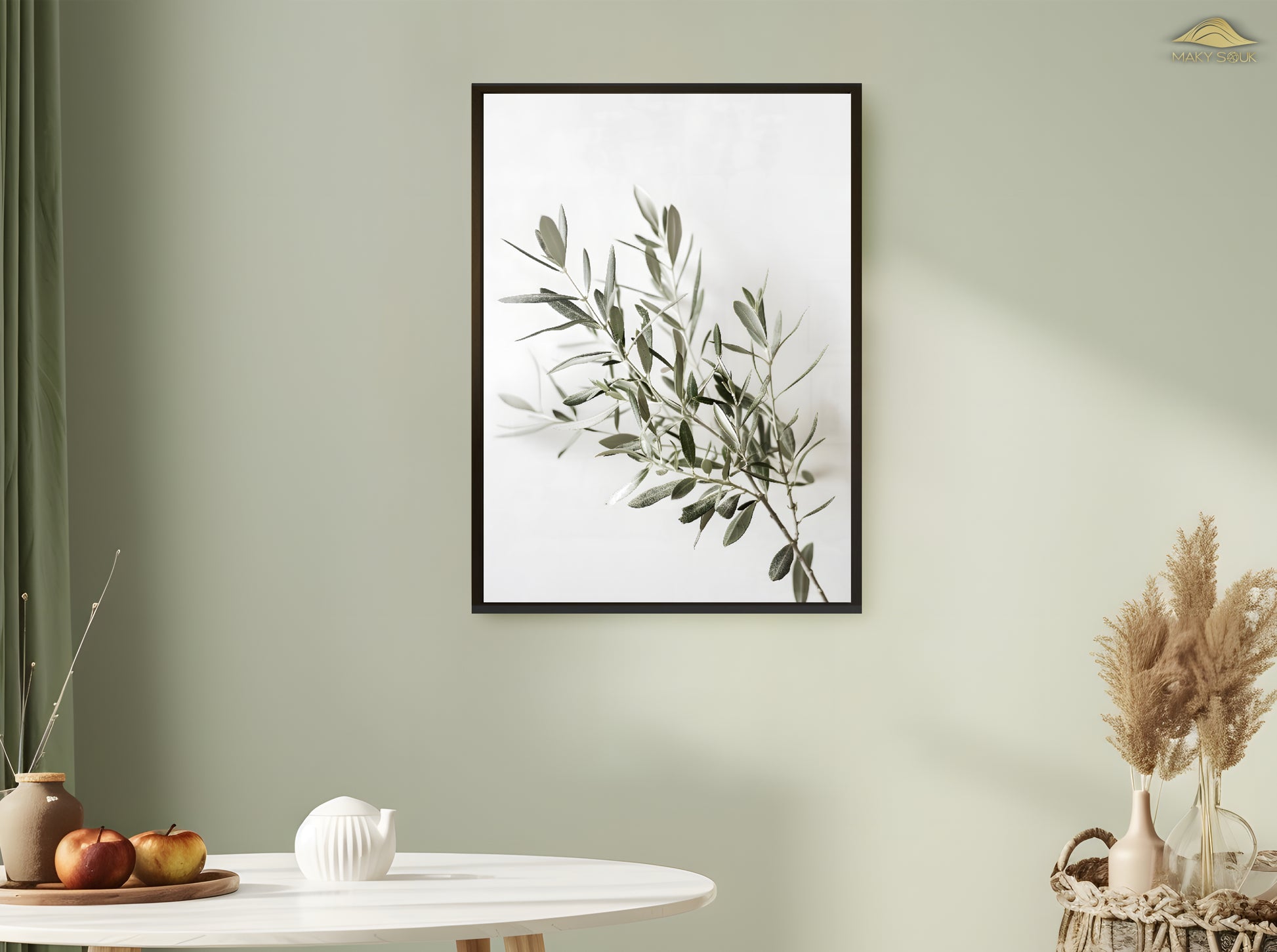 Genießen Sie die elegante Einfachheit eines Olivenzweigs, dieses Poster kombiniert minimalistische Schönheit mit kraftvollen visuellen Effekten, wodurch der Olivenzweig in seiner ganzen Pracht zur Geltung kommt. Der klare Kontrast und die subtile Farbgebung schaffen eine stilvolle Atmosphäre für Ihr Zuhause.